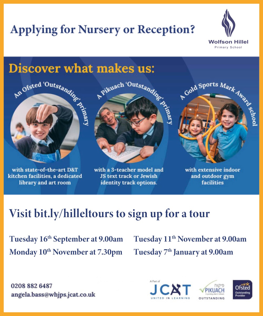 We can’t wait to welcome you to our warm and nurturing Jewish school. Wolfson Hillel is proud to be an Ofsted outstanding and a Pikuach outstanding school.
